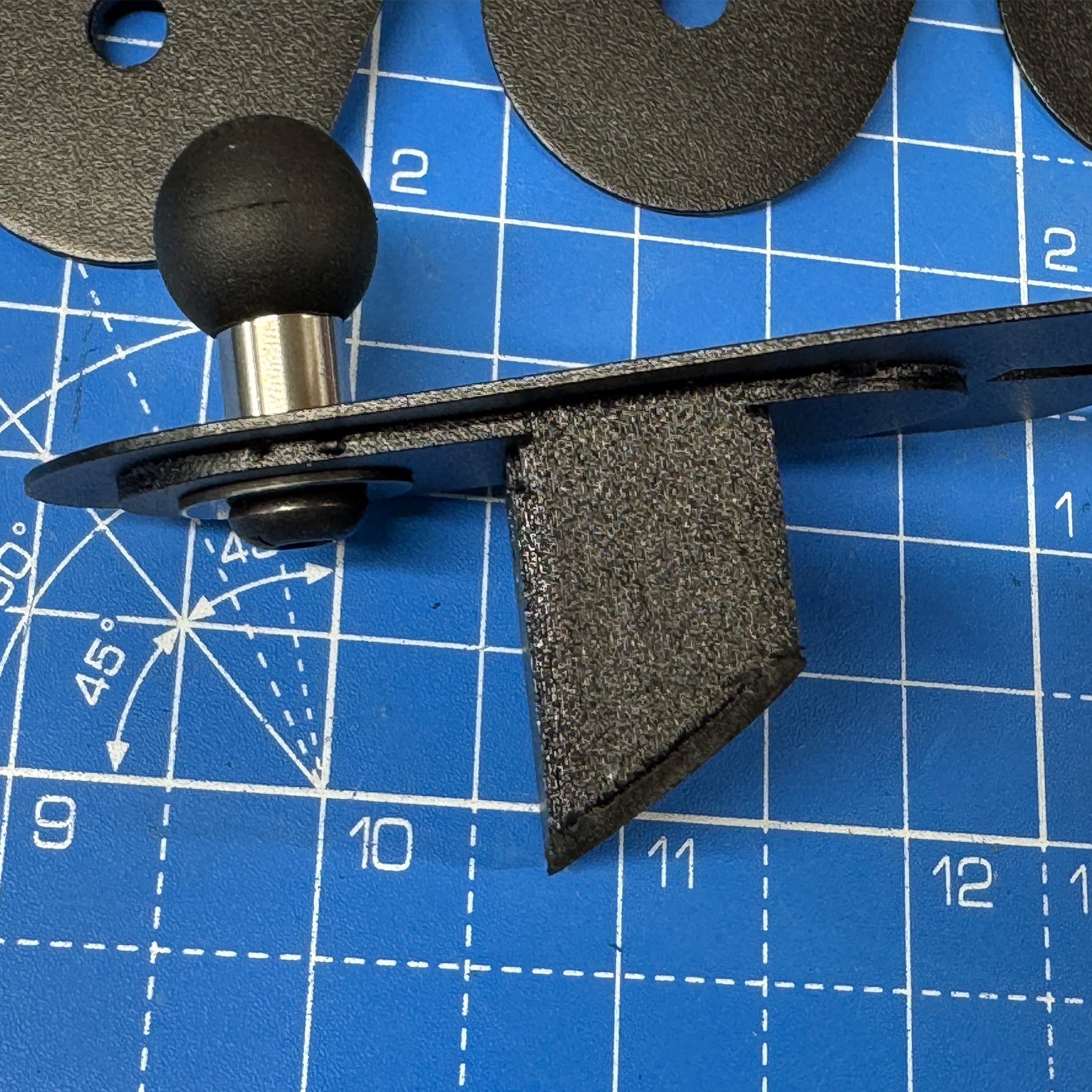 An adjustable 3D-printed support leg with a soft 2 mm foam pad protects your dashboard and suppresses vibrations, even during spirited drives. The leg also includes a slot for a USB cable, allowing for neat and seamless cable routing without clutter or modification.